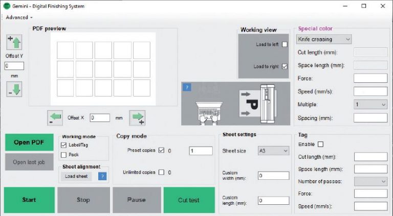 The Gemini Cutting Manager is our own proprietary software that will allow you to cut lines and paths of a pdf vector graphics.