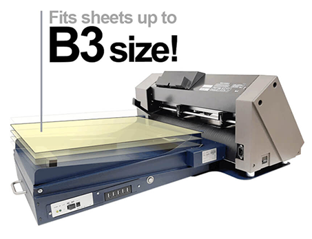 This innovative desktop cutter is capable of handling a variety of thickness and sheet sizes such as A4, A3, SRA3, SA3, Letter, Tabloid and Tabloid Extra.